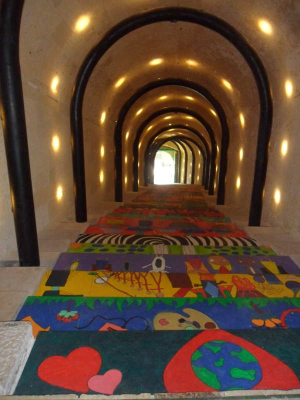 First stop though was the Inquisitor’s Palace. Like most buildings in Malta it was very old and contained some fantastic artefacts. First of all we went up a beautiful stone staircase to where we were shown a room full of the paintings, portraits and crests of all the Inquisitors of the period. The ceiling was lined with painted crests and looked magnificent. We were shown around other rooms like the library, and bedrooms and then we were taken to where all the information was gained through ill gained deeds.