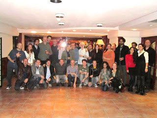After Mike had said his thanks I gave the organisers and guests their by-now customary Worlds End posters (created especially to commemorate the convention) and amidst a host of photo taking it was soon that time of evening once again. After three years the feeling has not changed, nor diminished. It is a nice warm feeling but one tinged with a little sadness, as we all say our goodbyes. Then once again it was time for the renowned last group photo of everyone there and that’s always a lot of fun, especially as we all know folks are trying to put on a brave face and hide a few tears maybe.