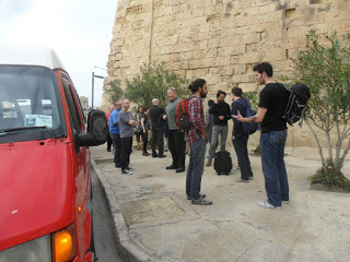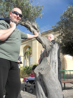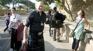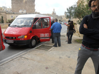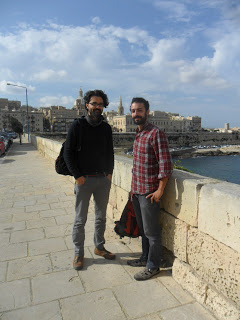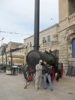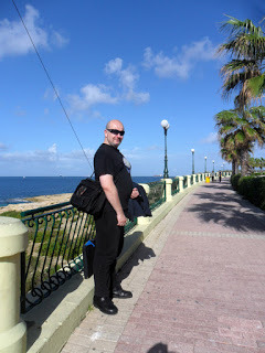 Wednesday was a day off in readiness for the next day's teaching and the sun bathed me as I opened my eyes to greet the day. After breakfast Jon and I went for a stroll to the promenade not more than 150 metres from the beach beneath the sunny clime of Malta. There we treated ourselves to an ice cream and a sit down discussing the moment. We returned to the hotel where we were to meet Mike Quinton, who would take us to the St. James Cavalier. So it was that with my roller banner in tow the three of us set off for Valletta.