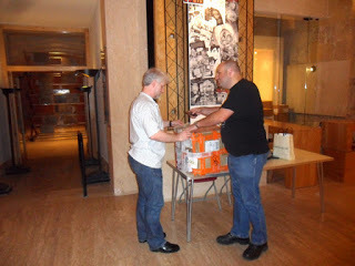 Next I needed to set up at the venue, so I made my way along there. Then after going along to the venue and setting up the signing area with books and everything else that was needed, erecting the banners and posters, checking out the video on the huge screen and the refreshments area it was back home to get ready myself.