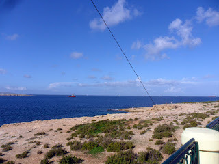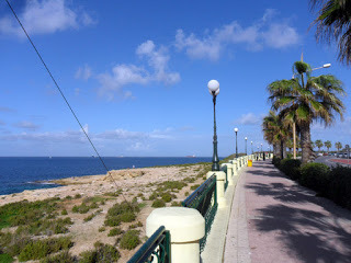 Well, the morning came round, thankfully, and I joined Jon downstairs for breakfast. The sky outside was blue with a few wispy white clouds and some bigger ones far out to sea. After breakfast we placed our travel luggage into storage at the hotel and then we took a stroll down to the promenade once more, reprising our first morning in Malta.