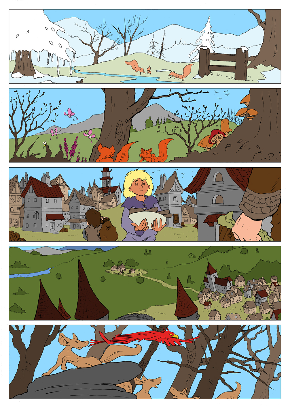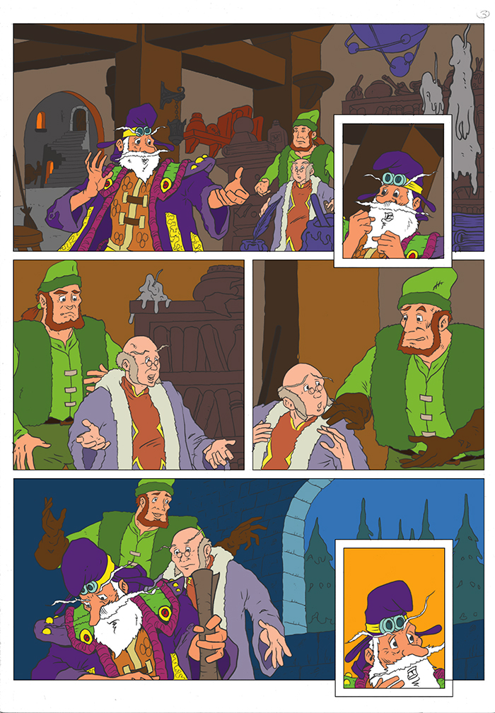 Wizards Keep Publishing will provide each page of artwork to the hired freelance assistant as psd files already set up in layers with more layers added by the assistant during production – examples will be given by Wizards Keep Publishing prior to beginning work on the project – in line with the Worlds End Volume 2 sample page.Each page will contain layers containing each individual character, background elements, midground elements and foreground elements on separate layers.
