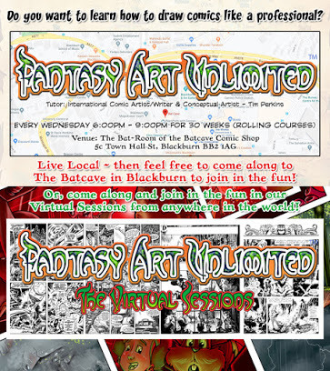 If you live in the Lancashire area this may be of interest to you; the Fantasy Art Unlimited art course has currently got a small number of places available to students wishing to take part on the course run by comic creator and director of Wizards Keep, Tim Perkins, Marvel, DC, Defiant, 2000AD, Tekno, etc.