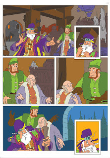 Here is Page 5I can't wait to paint this page - but I will have to, as I am working away presently on the pencils for more pages from this book.I am almost at the point in the story with the scene that begins the utter destruction of Gaeyrth under the onslaught of the Reapers - the total antonym to the scene here on this page as we transition from "Wynter" to "Spryng" in the Northern Hemisphere on Gaeyrth.Anyhow, I hope you will all join me in a resounding and well deserved, Welcome Aboard to Ric with this first of his pages from his first batch. Wait until you see the rest.Flat Colourists are unsung heroes for the most part, but not here at the Keep where we adopt them as fully fledged Colour Flats Wizards.And now without further ado, if you checked the words before seeing the picture - what are you doing, Folks.