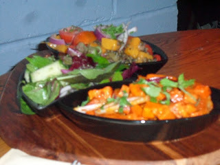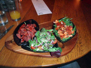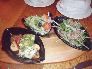 Inside we were directed to the restaurant, where we met up with John Freeman , who was already dining. We exchanged greetings and then arranging once more to go along to the event he was due to host in a short while we sat down. So, it was that with a table unoccupied we ordered from the special menu from the event and what beautiful food it turned out to be – well it did when it arrived. You have to remember that I was sharing the table with the aforementioned Mr Windett, yes, the cursed one. Not only did the meal take a while to arrive, but upon arrival, Dave pronounced that his order was wrong – he had ordered the vegetarian platter, which then entailed a further delay before the food arrived. When it did, however, despite the curse it was beautiful. There were two platters; a meat one and a vegetarian option and this was followed by a desert platter - Glorious.