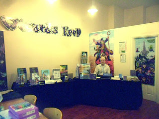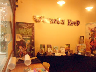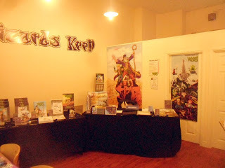 I leave the final words in the form of a few photos - not many I was so wrapped up in the event I kept forgettig to take them. Check out the bottom of the menu with Desperate Dan added - everyone got into the act like this - truly marvellous. Also look at the gorgeous food, the shop set up we had, some comics fans - now Worlds End fans strut there stuff after one of my workshops. And lastly, but not least a picture drawn by a very young, Loris. If Loris' parents just happen to see this, drop me a line with a low-res photo of you guys, so I can see you are the real McCoy and I'll send you something in the post by return.