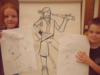 I did an impromptu sketching session for Mhairi next door for one of her little groups and was asked to draw a super-villain with the powers of super smell, super speed, the ability to turn into water, turn water into ice and the ability to fly. This was fun, and everyone enjoyed seeing me cope with the brief they had given to me, as I sketched away on the flip chart, speaking to the group all the while, as I always do, to add some entertainment value.
