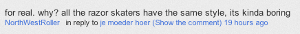 Honestly, though, it seems like the skater from the Vice article was yet another long line of posers, people identifying themselves with something for no reason other than the public perception. You all know skateboarders like this. They’re the ones spending more time at the skate park holding their board than actually riding it. They wear the skating clothes and cruise the malls. They bring their skateboards with them everywhere so they’re easily identifiable as a douche.