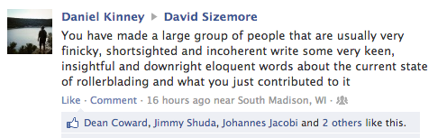 If anything, it’s a foot-in-the-door, and if you’re good at what you do, that’s all you need. Unfortunately, the only audience it’s reaching right now is rollerbladers, and even in that process—as you may have possibly notice before—is that we’re not a group that’s easily impressed.