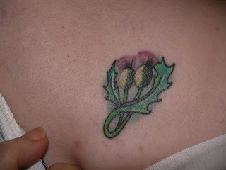It was really painful and it did put me off for a while but eventually, like most people I wanted more. I’ve always been a fan of tattoo art and most of my family have ink, whether it be a small memento or full body coverage. I was well versed in the hazards and the correct way to do things. It took me a long time to decide what I wanted, I didn’t want to regret it. That’s why I chose the thistle, it meant something to me.