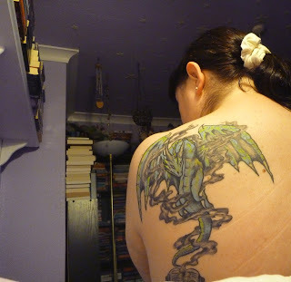 In the next couple of weeks the tattoo healed. There was blood, pain and finally itching so bad I wanted to scratch the skin off my back. You never know how a tattoo will look when it heals and 3 weeks later I wasn’t entirely happy. There wasn’t enough colour in it, the head of the dragon was indistinct and it just looked too dark. I really didn’t want to go back for more, there hadn’t been enough time for me to forget. Equally, I didn’t want to live with it so I reluctantly went back to the shop. They looked at it and agreed that it needed a bit more work so we made another appointment. I don’t know if it was psychological but this time it hurt even worse. It took another hour and I couldn’t have sat any longer than that. It was enough though, I was thrilled with the result but not with another two weeks of pain and itching. It’s now almost a month since I had the art done…do I regret it?