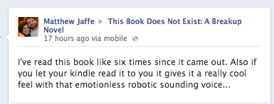 Matthew’s adoration for the book is of course humbling - but the idea to use text to speech on Kindle to get the robo-voice is dope as hell.