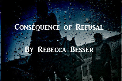 CONSEQUENCE OF REFUSALBy Rebecca BesserThe nurse left work at five o’clock. The route she took home would take thirty minutes and she was already late. She ran all the way to her car, cursing under her breath as she accidentally stepped into a puddle left by an early morning rainstorm.