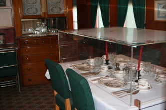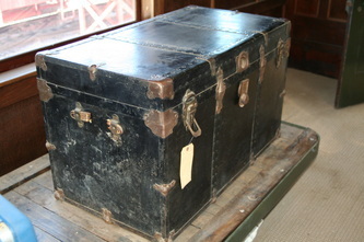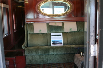 Engineer's seat. The Fireman's seat looked just like it, and was opposite. I guess you've figured out I'm researching trains. Well, steam trains during the 1870s, to be precise. After an internet search, I discovered a train museum in Chandler, Arizona, and I couldn't wait to check it out. I wasn't disappointed! The volunteers at the museum were super friendly and informative. They had a steam engine from around the era I was researching, which you can see in the above photos. Something I didn't know is that the engineer and the fireman were seated across from each other, and the burner was between them (third photo). Imagine the heat as the fireman loaded the burner right there. Also, there was no opening to see out the front of the train. In the last picture above you can see the engineer's seat and his window to the outside. Something else I discovered is that when the engineer was coming into a station, a worker would place torpedoes (basically small explosives) on the tracks. The loud popping noises as the train ran over the torpedoes would alert the engineer to slow down. Another misnomer is that the engineer was the person in charge. Nope, it was the conductor who oversaw everything and everyone.Below, other than the trunk, the pictures are from eras later than what I'm writing about, but just as fascinating. The second picture displays different seats from different train companies in an early 1900s coach. The third picture is sleeping quarters with a hide-a-potty. The last is from a personalized car. Wealthy people bought their own cars and made them magnificent; kind of like we do nowadays with RVs.