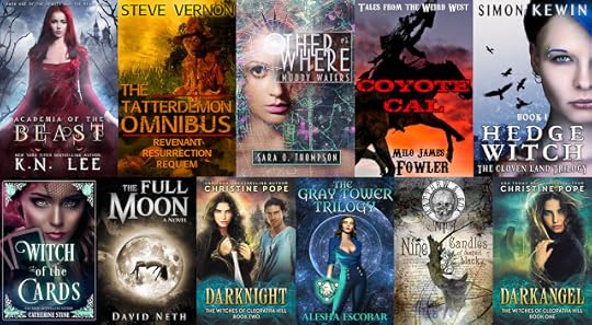 Books in the Witchy BundleThe Tatterdemon Omnibus by Steve VernonHedge Witch by Simon KewinCoyote Cal by Milo James FowlerAcademia of the Beast by K.N. LeeThe Full Moon by David NethMuddy Waters by Sara O. ThompsonNine Candles of Deepest Black by Matthew S. CoxDarknight (The Witches of Cleopatra Hill Book 2) by Christine PopeWitch of the Cards by Catherine StineThe Gray Tower Trilogy by Alesha Escobar*Bonus Newsletter Novel: Darkangel (The Witches of Cleopatra Hill Book 1) by Christine Pope