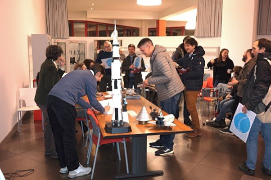 È stata una giornata molto bella, anche se per me la Dama del Maniero è stata anche parecchio frenetica, fra coordinamento delle copie da consegnare e firmare con dedica, risoluzione all’ultimo minuto dei problemi di videocollegamento per partecipare alla Giornata Nazionale dello Spazio (la registrazione è qui su YouTube) e preparazione del mio intervento pubblico, e quindi mi scuso con chi non ho potuto salutare di persona e per le chiacchierate che ho dovuto interrompere sul più bello perché dovevo scappare a portare pacchi di libri e riviste (gentilmente BBC Sky at Night edizione italiana ha portato una copia per tutti i presenti) o risolvere qualche magagna.