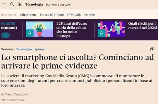 Il 28 dicembre scorso il Sole 24 Ore ha pubblicato un articolo intitolato “Lo smartphone ci ascolta? Cominciano ad arrivare le prime evidenze”, a firma di Marco Trabucchi. Il titolo è fuorviante e l’articolo rischia di creare un allarmismo inutile e ingiustificato.