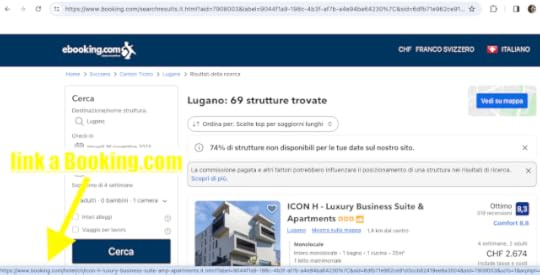Quello che rende particolarmente sospetto il comportamento di Ebooking.com è che se si visita il suo sito lo si trova pieno di offerte prenotabili ben confezionate, ma quando si clicca sui link di queste offerte ci si accorge che appartengono a Booking.com (senza la E iniziale).