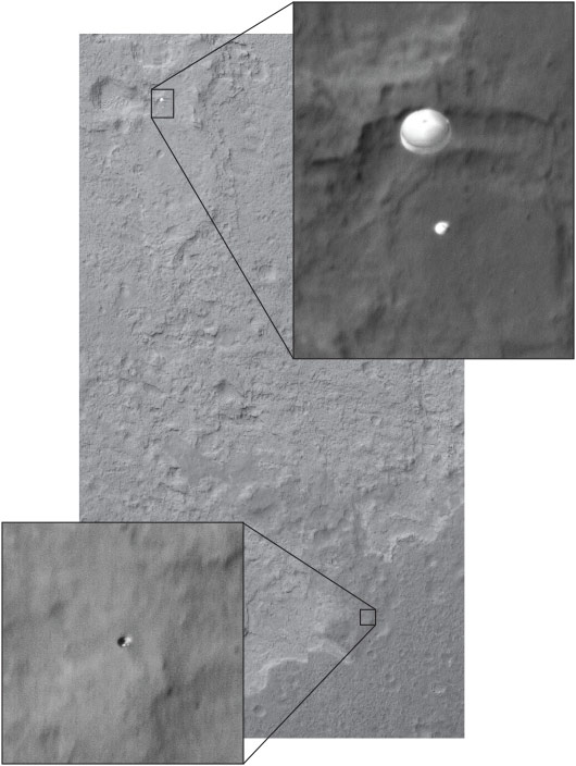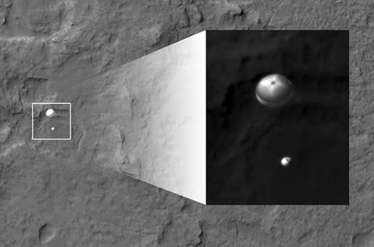 Discover Magazine ha tweetato un'immagine che a suo dire è stata trafugata in anticipo e mostra Curiosity appeso sotto il paracadute supersonico, fotografato dalla sonda orbitante Mars Reconnaissance Orbiter. L'immagine è stata confermata pochi minuti dopo da Emily Lakdawalla di Planetary.org. Qui è spiegato (in inglese) come è stata scattata.