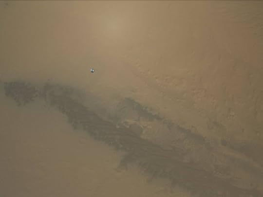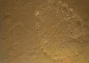 Da questa serie d'immagini traggo anche questa, che mostra la polvere marziana che inizia a essere sollevata dai razzi della gru volante dalla quale è stata poi calata Curiosity: