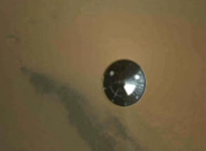 Come se non fosse già così un risultato spettacolare, la sonda MRO, da 340 chilometri di distanza, ha catturato l'immagine non solo di Curiosity che scende sotto il proprio paracadute, ma anche dello scudo termico che sta cadendo: