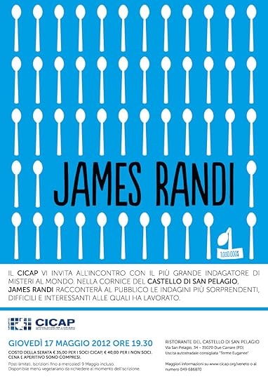 Il 15 maggio James Randi sarà a Torino e il 16 a Milano (i dettagli sono sul blog di Massimo Polidoro). Sempre il 16 terrà a Milano una conferenza allo SpaceCinema Odeon, accanto al Duomo: l'incontro sarà trasmesso in diretta via satellite negli SpaceCinema di tutta Italia. Le prenotazioni sono effettuabili qui.