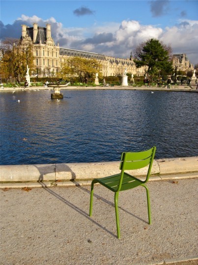 The green chairs in the Jardin Tuileries are the perfect chair upon which to sit, so that one, instead of enjoying the view, may comfortably remove one's sock and shoe, the better to peruse the screaming blister, maybe applying more bandaids etc. I got to know these chairs well. One can sit on them with ease. One can even nap in them. Unlike the ubiquitous green benches which require a certain amount of practice before one can actually sit rather than slide, rear first, all the way through them.