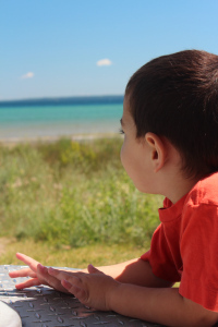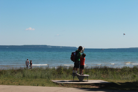 The boys checking out Lake Huron via 50-cent telescope