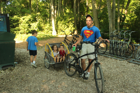 Getting ready for a family bike ride around the perimeter of the island