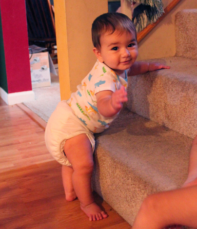 Sign that it’s time to clean the house: the other morning, Michael had something in his mouth and was gagging on it, but he wouldn’t let me in to get it out. When I finally prevailed, I found a piece of a plastic wrapper. That night we went to the pool, and about twenty minutes in, Michael smiled big at something and I saw a bright purple hair band resting on his tongue–a hair band he had to have been carrying since we left home. Yes, we have spent this week cleaning the floors. :/