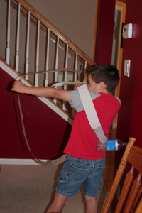 This has not been a productive writing week. Julianna had two appointments–another round with the med students and her first PT appointment to work on her overtight calf muscles. And we’ve been busy trying to do chores and field trips and make Fathers Day crafts. (By the way, if you missed this post, please read.) With the help of the sitter and a baby who took a 2-hour morning nap yesterday, I finally made some good progress toward one of my next deadlines. I’m starting to feel a need for some writing “down time” again. I want to tackle organizing my house!