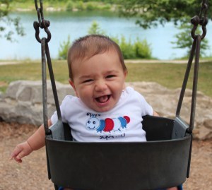 Michael’s first time in a swing! Good thing Nicholas is around to push, so Mommy can man the camera.