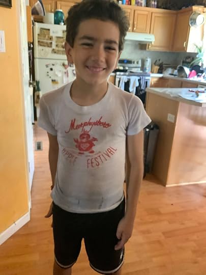 Today, I had him take it off so I could cut his hair, and as I watched the runs stretch, I shook my head and said, “Son, one of these days, you’re going to take that shirt off and it’s going to split right down the middle. And when it does, I want you to say, ‘Shirt, I have loved you well, and you have served me well. Rest in peace.’ “