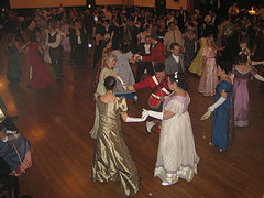I understand Jane Austen’s world in a way I never did before. I’ve heard them called social dances, and that means something. It almost doesn’t matter who your “partner” is, because you only spend about half your time dancing with that person anyway. The music is at a volume that not only facilitates but encourages conversation, as does the fact that you’re usually taking turns moving.