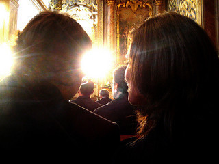 Well, this particular chapel is set up with the musicians behind a vertical-wood-paneled screen, so he started the Canon in D and shifted his weight while I reached into his back pocket and started wriggling the wallet out.