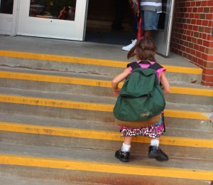 So the day before school started, we had an IEP meeting in Julianna’s classroom at her new school, a meeting that included the principal and a representative from the district (I’m not sure if that second one is standard, but I’m pretty sure the principal’s presence is not). It was a good thing on many levels. Our ideas for goals have solidified in the past few months, for one, and this allowed us to formalize those goals. It also served to introduce us to the team, and best of all, the school was on board with a much greater level of inclusion. They reversed the proportions. Now, Julianna is spending the day in her regular classroom, and being pulled out for PT, OT, and speech therapy, plus adaptive PE and a little bit of extra instructional time. It boils down to this: Julianna’s in a regular ed classroom around 70% of the time.