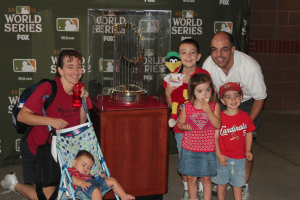 This came home to me really hard yesterday afternoon. We went to a Cards game, and had the opportunity to have our picture taken with the World Series trophy. It was kind of an assembly line, of course, and we were corralling four kids wearing red amid thousands of other people wearing red. Somewhere around the fourth inning, I suddenly realized: I didn’t even look at the trophy. Not for one second. I turned to Christian. “Hey, did you actually really look at that trophy?”