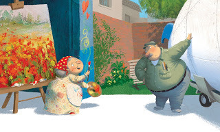 7. ¿Qué obras son más especiales o favoritas para ti? ¿Podría compartir el trabajo y la razón, así con nosotros? Tengo la tendencia en pensar siempre que mis últimos trabajos son mis preferidos por esa cuestión de creer que uno siempre está creciendo, pero últimamente me he dado cuenta que los que más me gustan son los que no fueron por encargo, los que fueron hechos buscando nuevas técnicas o experimentando. De esta manera fueron hechos "Hombre con sombrero" , "El payaso y la luna" , "princesa Roja" ó "El pescador y el pez dorado", algunos de ellos porque sentí que me divertía cuando los hacía, otros en cambio los vi como bisagra en mi carrera y que algo de ellos los volcaría a una siguiente etapa. Por ejemplo, recuerdo cuando un colega (el querido José Sanabria) criticó que mis personajes siempre estaban alegres o no tenían alguna historia detrás de sus gestos más alla de la historia que contaban los textos. Fue así que como ejercicio salió "Antes de la función", una ilustración llena de sentimientos y de historias posibles, como lo puede contar una fotografía. Aquí comprendí que una ilustración por sí sola puede contar muchas cosas, ese comentario fue fundamental en mi carrera.