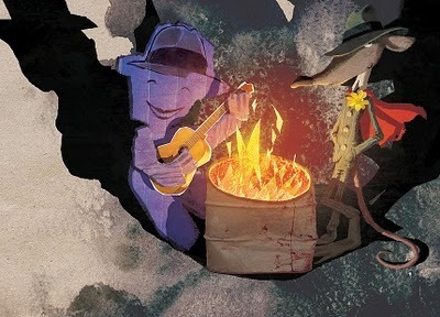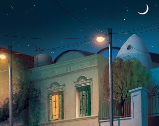 Además de los grandes pintores e ilustradores del mundo y de todos los tiempos (especialmente los que manejaron los climas, la luz, como Goya, Rembrant, Zorolla, Turner… el impresionismo) Tengo una profunda influencia de lenguajes que vienen del cine, la animación y la fotografía. Por eso no es raro que mis primeros trabajos como ilustrador hayan sido para fondos de películas animadas, desde siempre me gustaron los paisajes y cuando tuve la oportunidad de hacer libros, ilustrar cuentos, volqué ese gusto por los climas en mis historias. Pero mi principal influencia ha sido siempre Alberto Breccia (historietista Argentino), su constante búsqueda y experimentación siempre fue algo que me motivó en mi carrera. La búsqueda es siempre una parte importante de mis ilustraciones, me gusta buscar nuevos caminos para cada ilustración, por cada proyecto en el que trabajar. La mayoría de estas búsquedas son a través de la luz, el color y las texturas.2. ¿De qué material, herramientas y técnicas utiliza y por qué decide eso? Por lo general, ¿cuál es tu proceso de trabajo cuando crea? Por suerte bellas artes me ha permitido conocer el manejo de muchos materiales (oleo, acrílico, acuarela, escultura, grabado, etc), también aprendí algo de fotografía y me gusta mucho hacer maquetas. De todo esto siempre uso algo de acuerdo al proyecto que encare, pero siempre termina todo pasando por el Photoshop! Es mi herramienta fundamental, por lo general la utilizo para editar todo lo que previamente hago a mano (texturas y dibujos), después agrego terminaciones con pinceles diseñados por mí, pero siempre usándolo de una manera parecida a la tradicional, trato de evitar lo más posible los filtros pre-diseñados. Por eso nunca he podido usar el Painter, imita demasiado la realidad, en cambio en Photoshop utilizo mis propias texturas y pinceladas, el resto es editar todo ese trabajo previo y por esa razón me resulta más cómoda como herramienta.