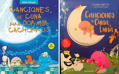 Ambas, autoras muy reconocidas, seguramente habrán coincidido en temáticas como las de Brujas, monstruos, cuentos con animales, adaptaciones de clásicos, de poesías…y serían incontables la coincidencias, esta ha sido una más porque es parte del negocio de las editoriales editar libros con temáticas que venden.Vean sino las siguientes ediciones que he encontrado, todas con CD, solo algunas de tantas y muchas...con lunas y animales en sus tapas (caramba...tampoco fui nada original!)