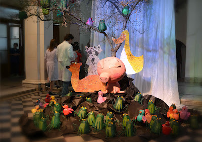 Pero una mención aparte merece la gente de "Elordi", la escuela que le tocó trabajar con mis libros y que me sorprendieron con una espectacular muestra en el hall central de la municipalidad, además de ver hermosas obras de los chicos con diferentes personajes de mis trabajos hicieron una increíble instalación con una escena de "Sapo de otro pozo". Fue profundo ver tal demostración de afecto y ha sido muy emocionante e inspirador.