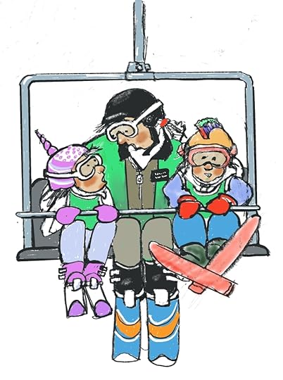 Sometimes I draw pictures with them in the morning with crayons on the butcher paper covered tables before they put on their helmets and mittens and head out to the snow. On the way up the lift one of the girls who said she was from Georgia, talked to me about drawing pictures. I told her I illustrated picture books. Do you know what an illustrator does?”