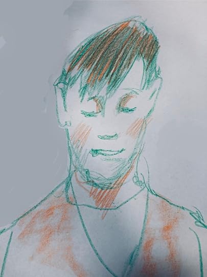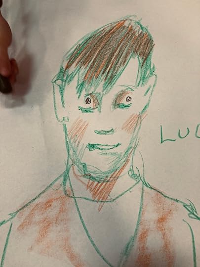 “There that’s better.” He shares a room with his brother. Maybe he would want to put some eye balls on the water color below.