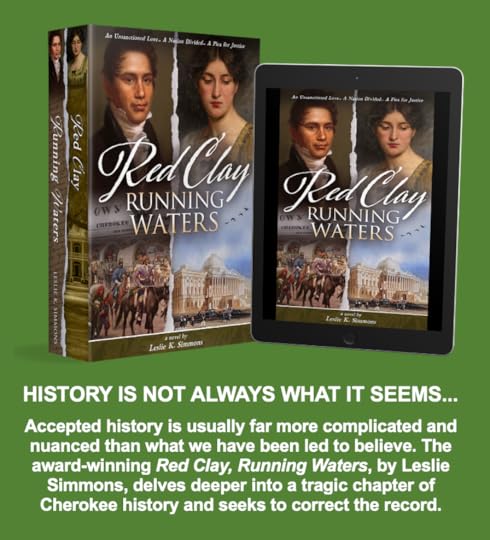 Red Clay, Running Waters is a tour-de-force of both exhaustive research and powerful narrative. Leslie's real-life characters come alive, rising from the pages into your heart as you experience their struggle to preserve a free Cherokee Nation. Red Clay, Running Waters has won awards and accolades from NYT bestselling authors, such as Rilla Askew (The Mercy Seat, Prize for the Fire, others) and the great Cherokee author, Margaret Verble (Maud's Line).