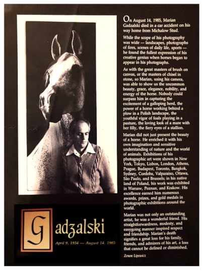 Marian Gadzalski was a Polish photographer who became famous world-wide for his magnificent photographs–both black and white and color–of horses. I did not learn about Gadzalski's work until after he died quite young in a car accident in Poland in 1987.