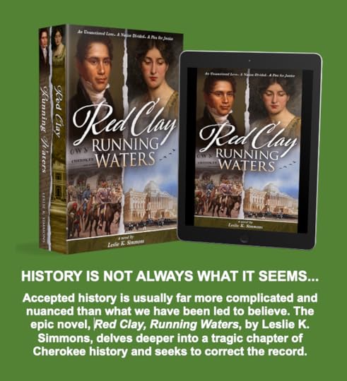 Red Clay, Running Waters is a tour-de-force of both exhaustive research and powerful narrative. Leslie's real-life characters come alive, rising from the pages into your heart as you experience their struggle to preserve a free Cherokee Nation. Red Clay, Running Waters has received accolades from NYT bestselling authors, such as Rilla Askew (The Mercy Seat, Prize for the Fire, Fire in Beulah) and the great Cherokee author, Margaret Verble (Maud's Line, Cherokee America, Stealing).