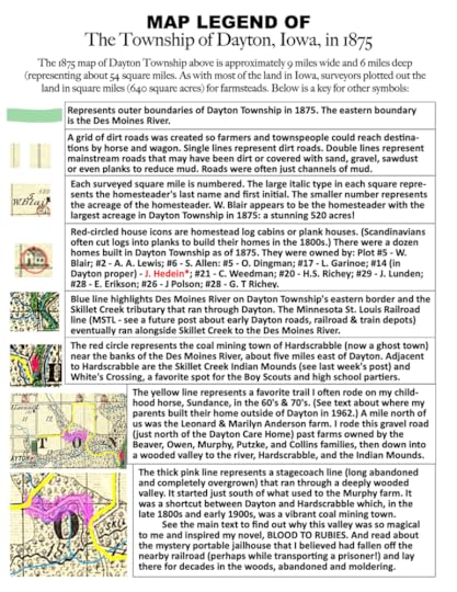 During my presentation, I recounted many of the inspirations in BLOOD TO RUBIES from Dayton and my childhood. Here are just a few: Allen Porter (who founded the Dayton rodeo); a herd of Appaloosas led by a leopard stallion that grazed in the Des Moines River Valley where I rode as a child); the Maple Leaf Cafe (where I worked as a waitress in high school; Danny Stoneburner (my classmate, who was also a grill cook there); the Rusty Spur (our town tavern); Helga (an old Scandinavian widow and hoarder who lived in the heart of Dayton on a half block buried in trees and collapsed buildings); Fred Jebron (an old farmer who drove a beaten down John Deere tractor. His three-legged rat terrier always ran under the back axle); Marilyn Sandholm's big oak tree (Marilyn was the town piano teacher who taught me and most of the kids in Dayton. At the corner of her property was a big oak tree that used to scare the wits out of me at night); the "three sisters" trees ( three huge elm trees in the front of McElvain's sheep farm next to my parents' home. I used to play under those trees and called them "the three sisters," just like little Ella in BLOOD TO RUBIES. Later, I pastured Sundance in Mr. and Mrs. McElvain's sheep pastures; Erma Kay and Burton Yale (two oldsters from Dayton. Later, when I became friends with Erma Kay, I discovered that she and her husband had been vaudevillians early in the 1900s! They make an appearance in my book); old pioneer ruins near Skillet Creek in back of Dan Bohlke's childhood home (you'll find this inspiration in the chapter, sumac dreams); Velda Porter (the first Dayton Rodeo Queen and Allen Porter's first wife, who had suffered severe brain damage as a young woman after being kicked in the head by a horse. When I was the Dayton Rodeo Queen, I cared for her in the Dayton Care Home, where I worked all through high school. That was a profound experience, as were so many of my childhood experiences growing up in Dayton.) Read BLOOD TO RUBIES to discover even more inspirations from Dayton!