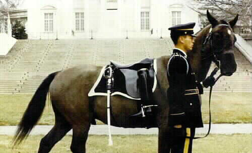 Comanche was attached to General Custer’s detachment of the 7th Cavalry when it engaged the Lakota in 1876 at the Battle of Little Bighorn. The troops in the detachment were all killed in the engagement, but soldiers found Comanche, badly wounded, two days later. They nursed him back to health, and he became the 7th Cavalry’s mascot. The commanding officer decreed that the horse would never again be ridden and that he would always be paraded, draped in black, in all military ceremonies involving the 7th Cavalry. When Comanche died of colic in 1891, he was given a full military funeral (the only other horse so honored was Black Jack, who served in more than a thousand military funerals in the 1950s and 1960s). Comanche’s taxidermied body is preserved in the Natural History Museum at the University Of Kansas.