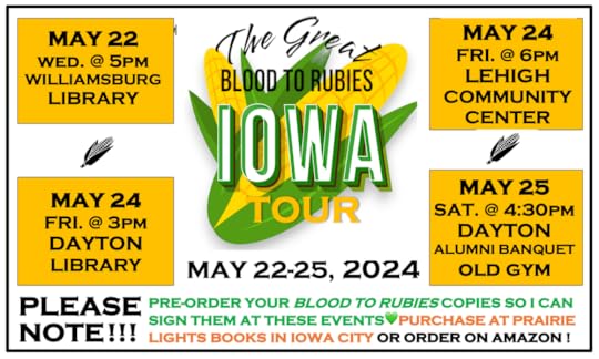 "THE GREAT BLOOD TO RUBIES IOWA BOOK TOUR" was first published on Facebook and NotesfromtheFrontier.com on Memorial Day, May 27, 2024.