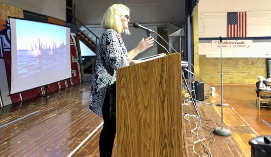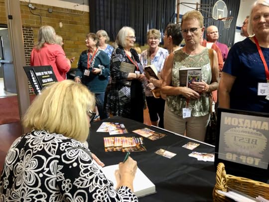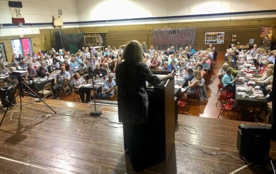 Here I am speaking about my debut novel, BLOOD TO RUBIES, at my high school all-class reunion at the Dayton, Iowa, Alumni Banquet––170 attendees! Pretty darn good for a small farming community of 700❣️ Many of the characters and place names in my debut novel were inspired from my childhood growing up in Dayton.